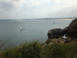 By the time we ate and packed our bags to leave, the clouds started to burn off so we headed back to the beach until our bus left for Burgos. The tide was really low and the crowds were much less than yesterday so the beach had a whole different vibe. We were able to walk out to some tide pools and around the rocks to the adjoining beaches – Playa de La Concha and Playa del Camello. It reminded me of Laguna Beach.