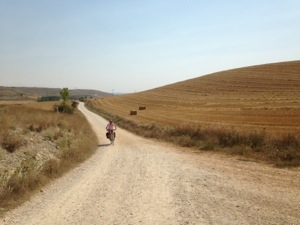 Leaving Burgos, we entered the meseta. The meseta is a series of high plateaus (mesas) that offer almost no shade and very few towns. Perfect place to use a bike.