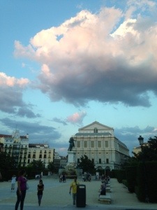 When she returned, we decided to take a tour of the city on an open air double decker bus. We walked over to the bus stop around 8 pm. It was a perfect summer evening – the night was warm and Madrid’s streets and parks were filled with people walking, relaxing on the grass and benches, and talking with friends.